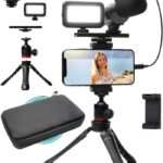 iVlogger Vlogging Kit for iPhone – Lightning Compatible YouTube Starter Kit for Content Creators – Accessories: Phone Tripod, Phone Mount, LED Light and Shotgun Microphone